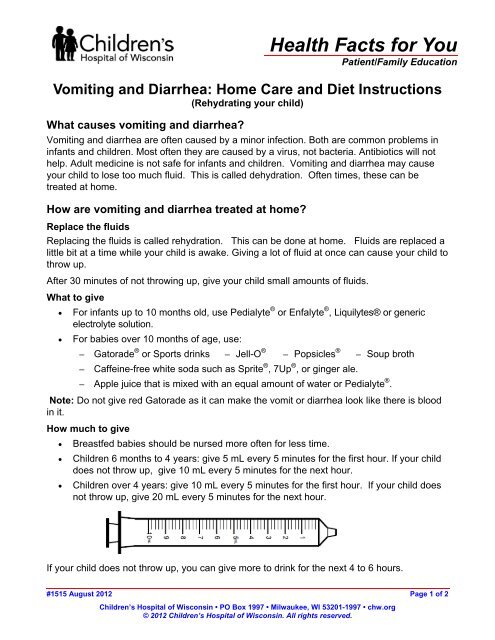 Vomiting And Diarrhea Children S Hospital Of Wisconsin