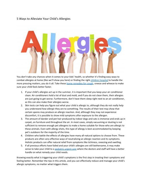 5 Ways To Alleviate Your Child S Allergies