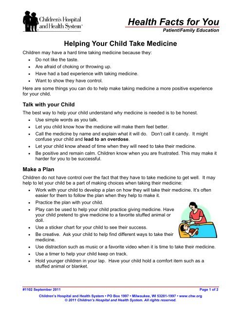 Health Facts For You Children S Hospital Of Wisconsin